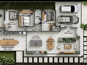 O imóvel apresenta uma planta inteligente e funcional, distribuída de forma a otimizar o conforto e a privacidade. São 3 dormitórios, sendo 1 suíte, complementados por um banheiro social e um lavabo. A área social conta com uma sala ampla e integrada, varanda e área de serviço. Para total conveniência, a unidade dispõe de 2 vagas de garagem.