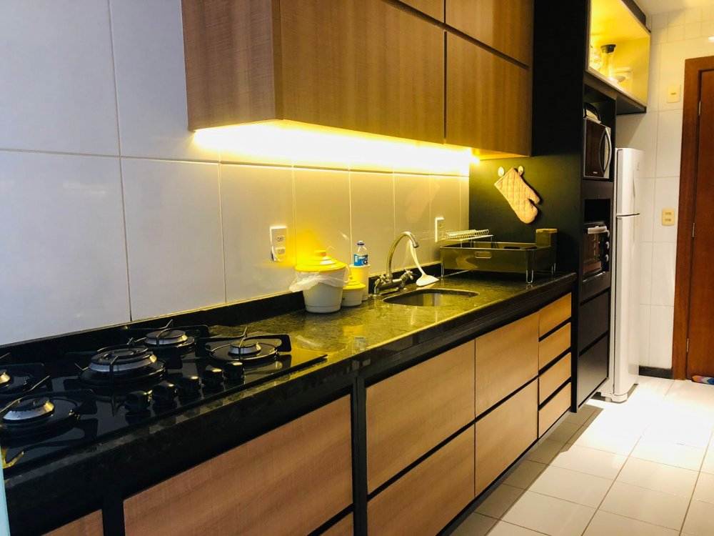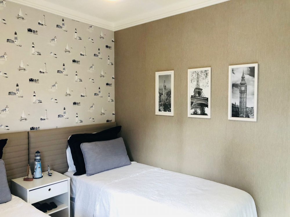 São 3 quartos, sendo duas suítes, apartamento totalmente mobiliado e reformado. Não necessita fazer absolutamente nada só entrar e morar.